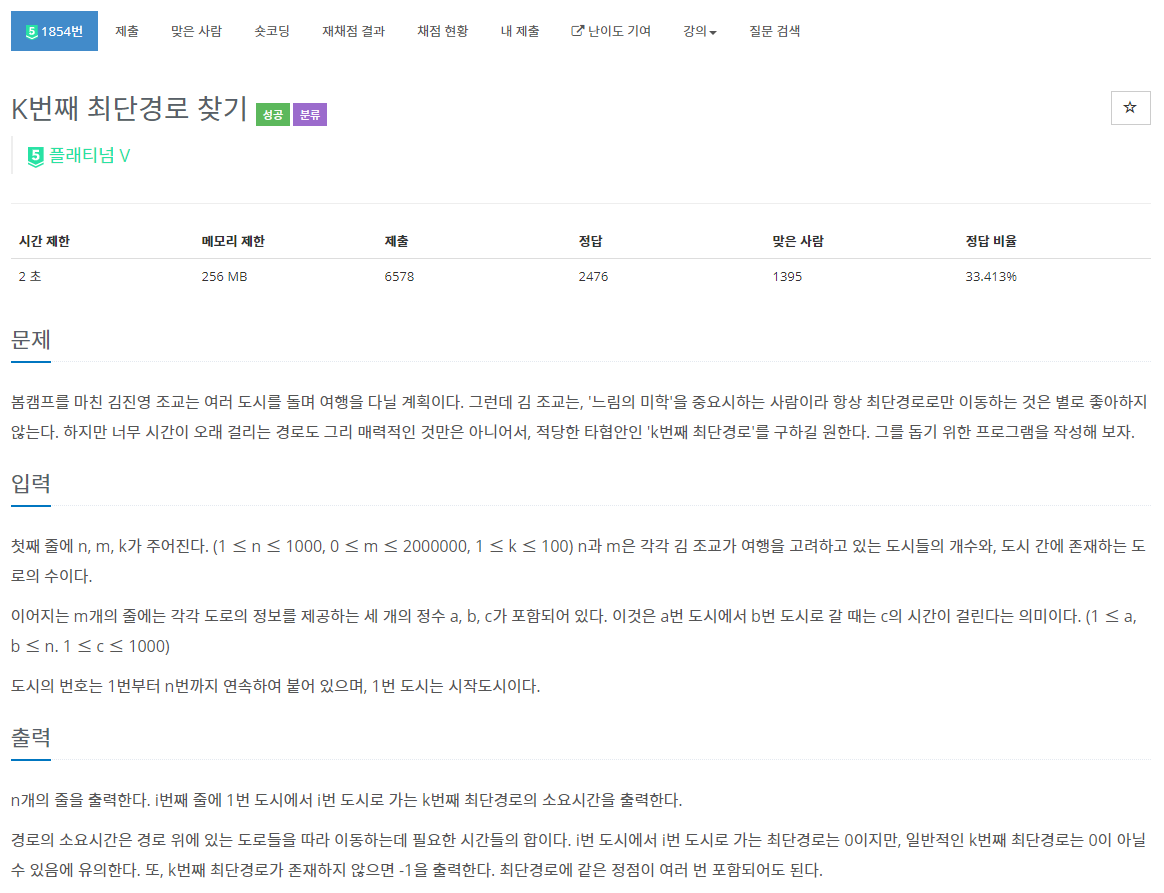 K번째 최단경로의 가중치를 갱신해줘야 하는 경우가 아래의 else IF문이다.