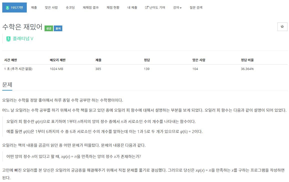 xφ(x) = n을 만족하는 양의 정수 x가 존재하면 최소의 x를, 존재하지 않으면 −1을 출력한다.