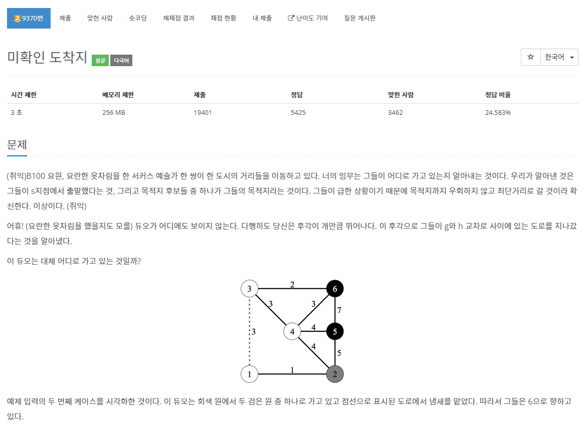 시간초과의 경우는 목적지 후보 K에 대한 다익스트라를 돌리지 말고