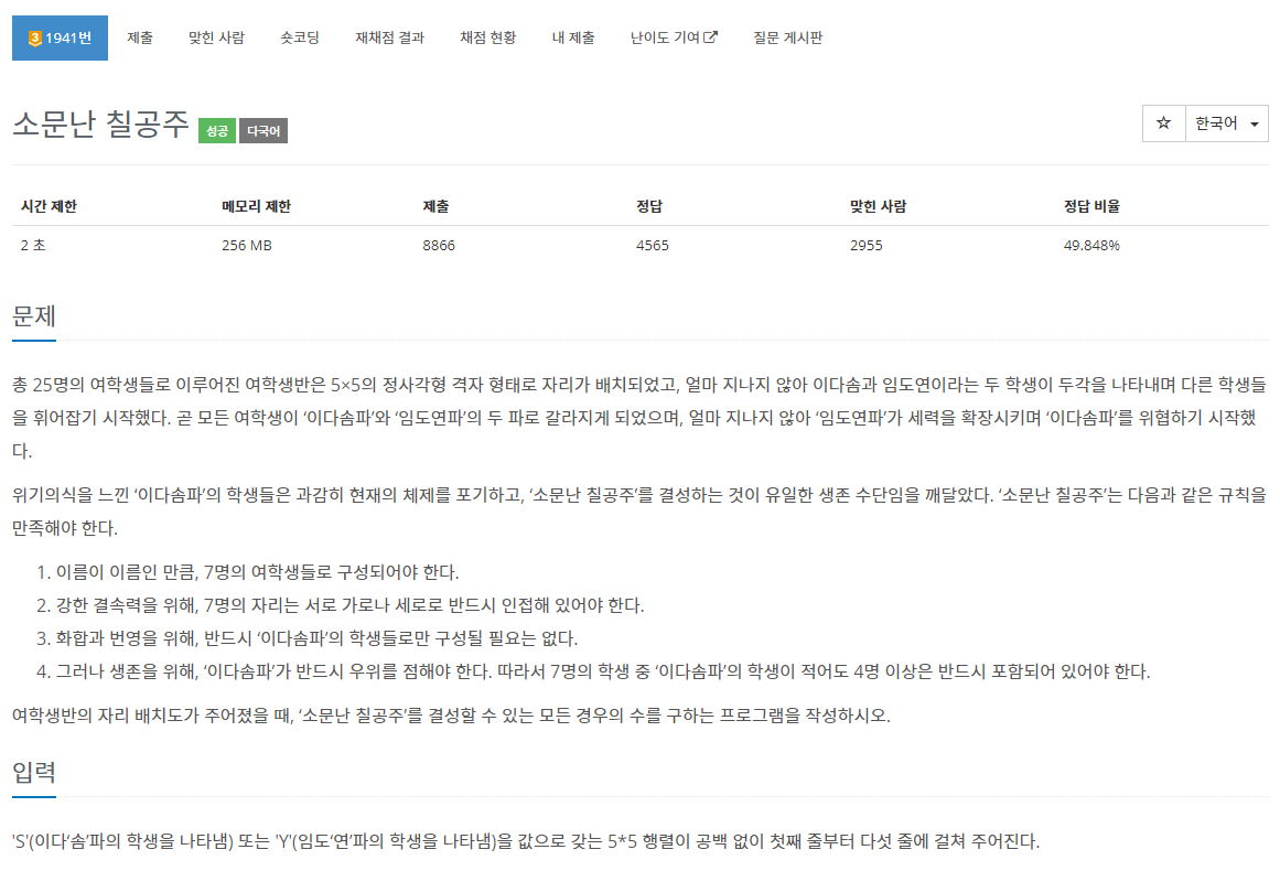1941번: 소문난 칠공주