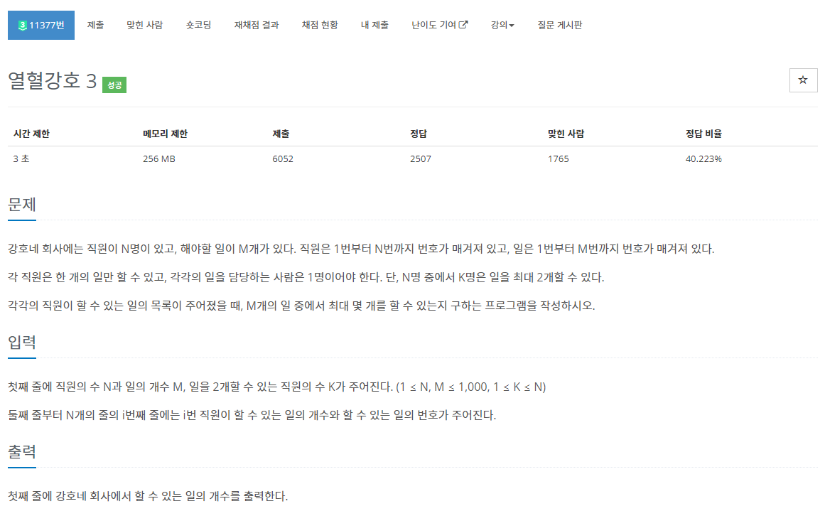 첫째 줄에 직원의 수 N과 일의 개수 M, 일을 2개할 수 있는 직원의 수 K가 주어진다. (1 ≤ N, M ≤ 1,000, 1 ≤ K ≤ N) 둘째 줄부터 N개의 줄의 i번째 줄에는 i번 직원이 할 수 있는 일의 개수와 할 수 있
