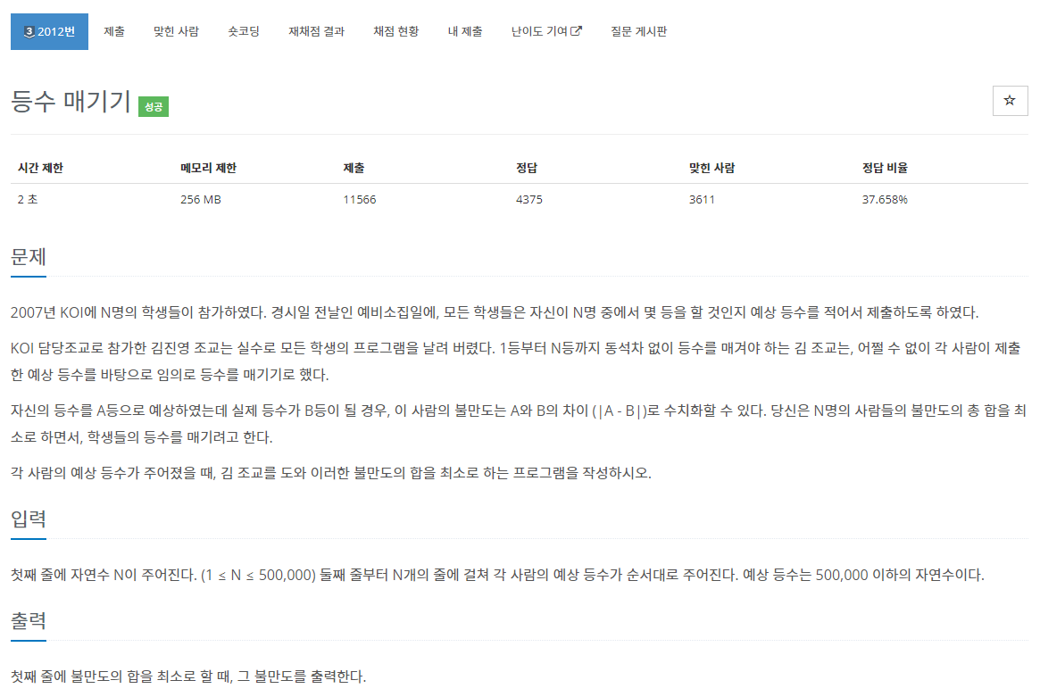 입력으로 들어온 배열을 정렬해서 인덱스값+1 과 비교해서 불만도의 총 합을 구하면 된다.